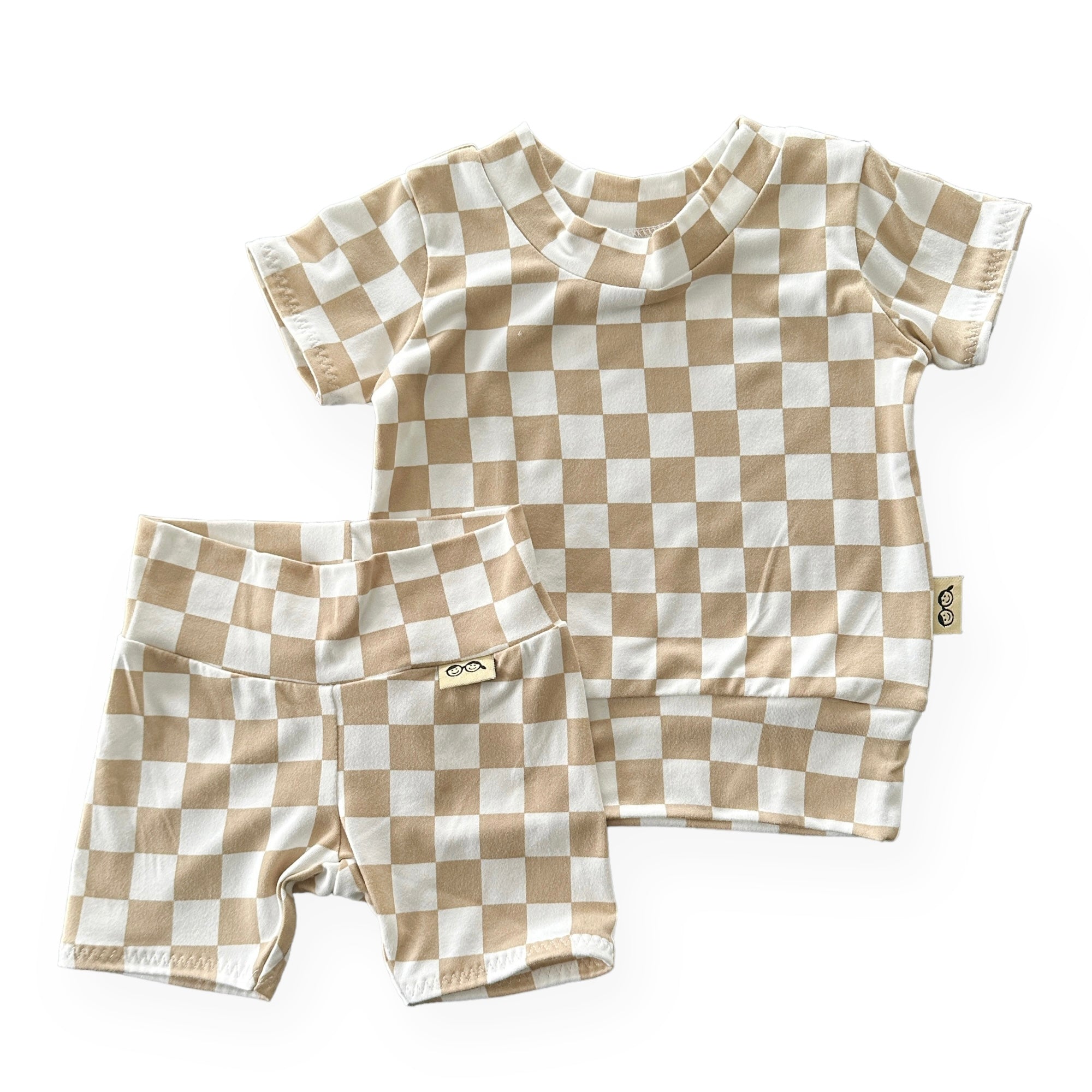 Taupe Retro Checkered Biker Shorts Lounge Set