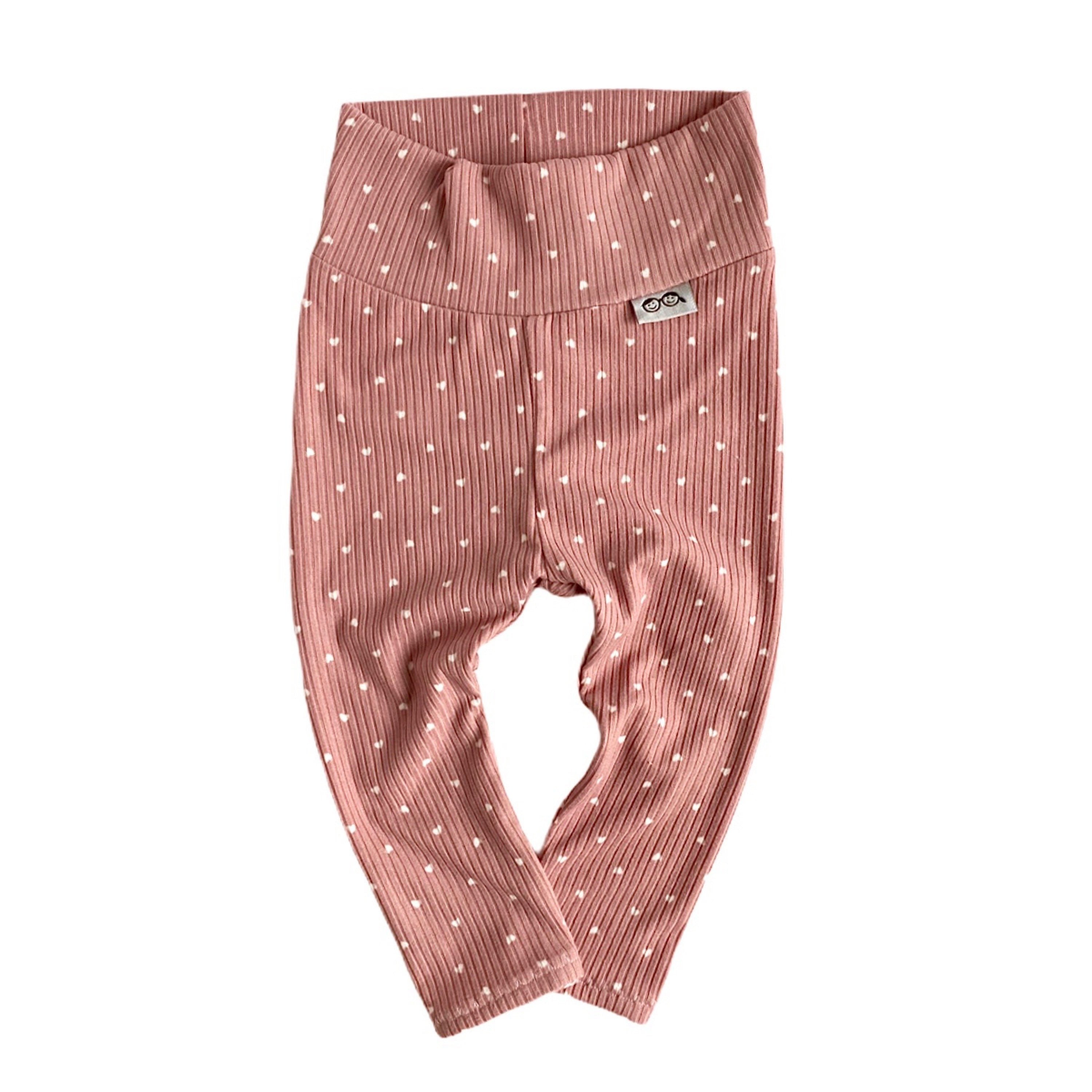 White Hearts on Dusty Rose Ribbed Leggings