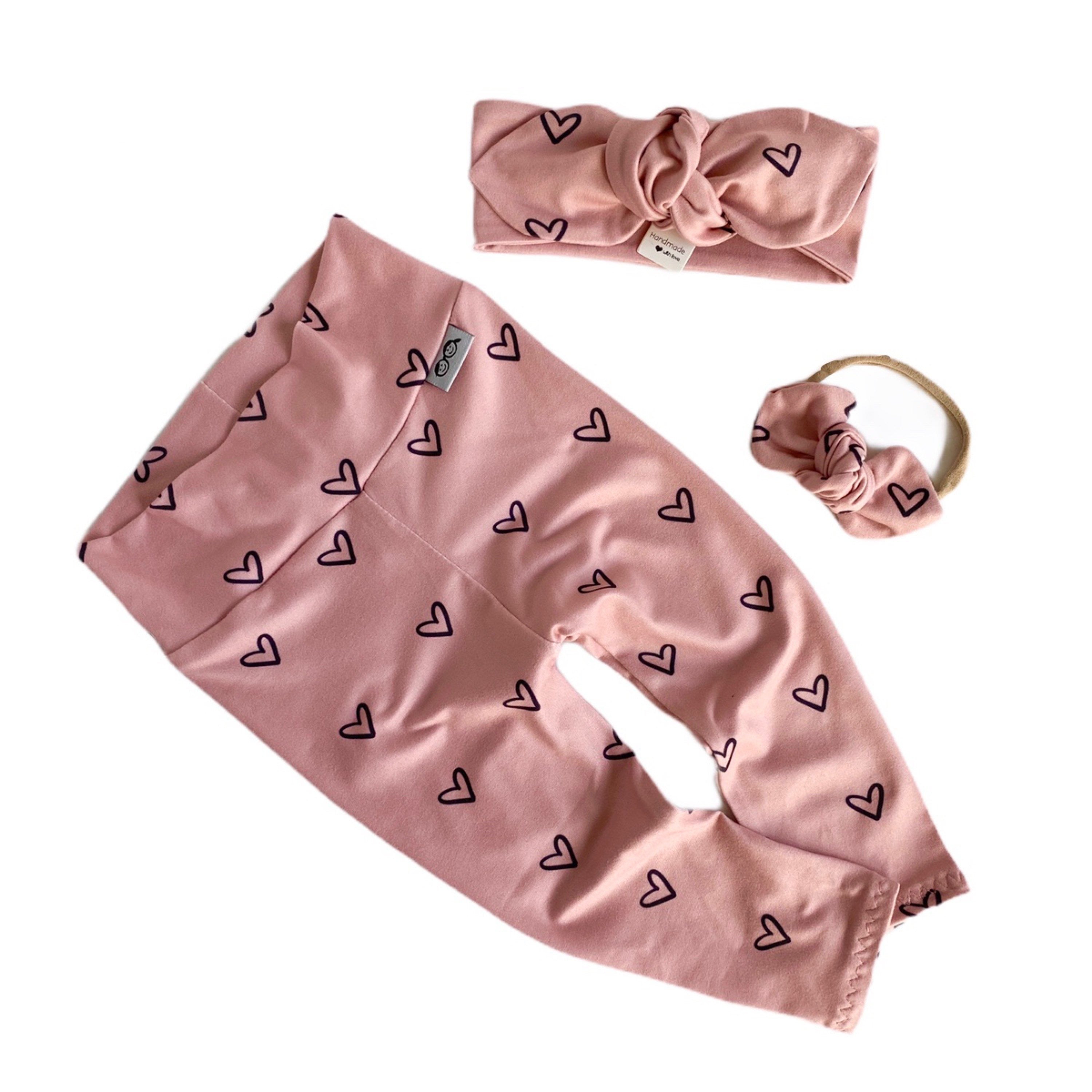 Black Hearts on Dusty Pink Leggings and/or Headbands