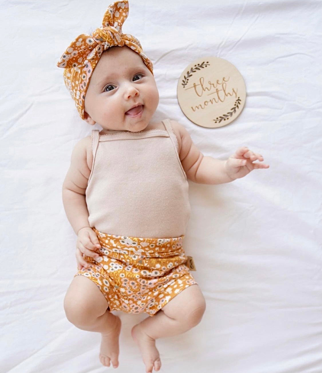 Groovy Dainty Florals on White Rib Bummies and/or Headbands