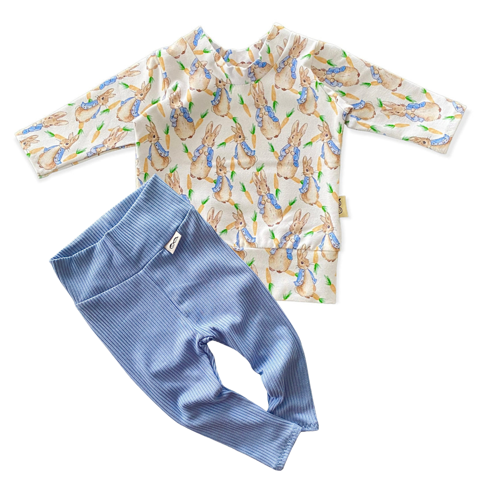 Vintage Rabbit Top and Blue Ribbed Lounge Set Lounge Set