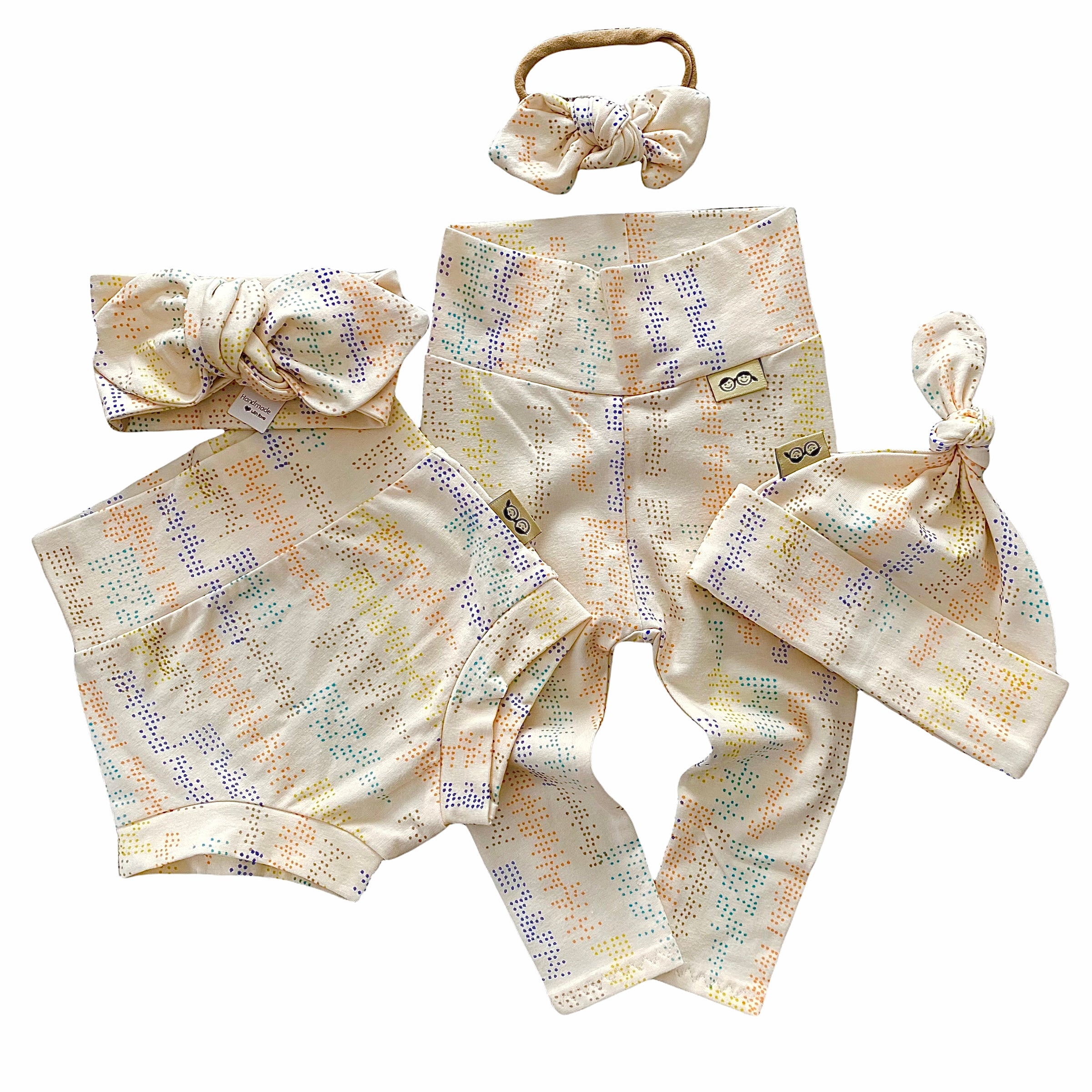 • Colorful Tiny Dots on Cream Leggings and/or Knot Beanie