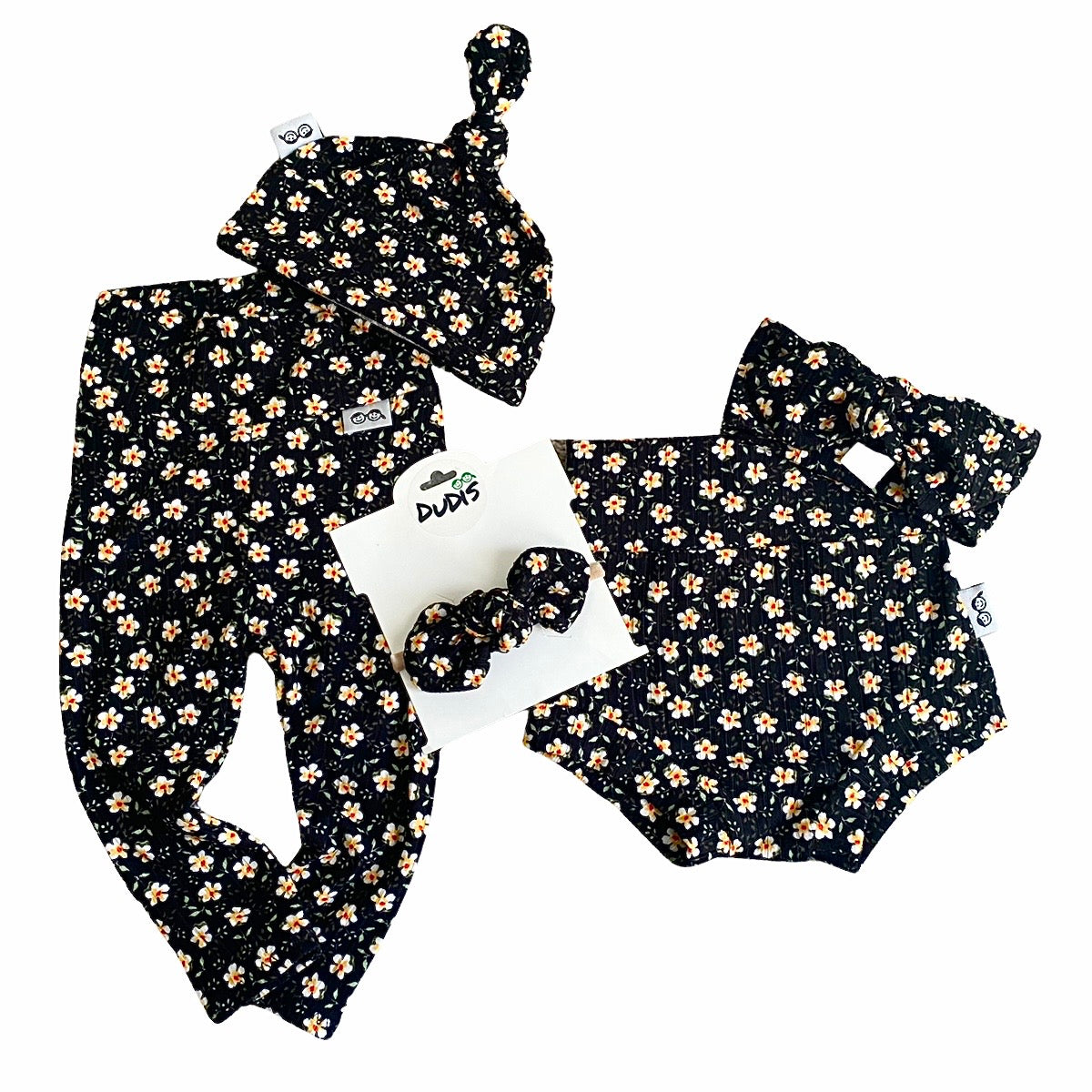• Dainty Floral Black Ribbed Leggings and/or Beanie Knot Hat