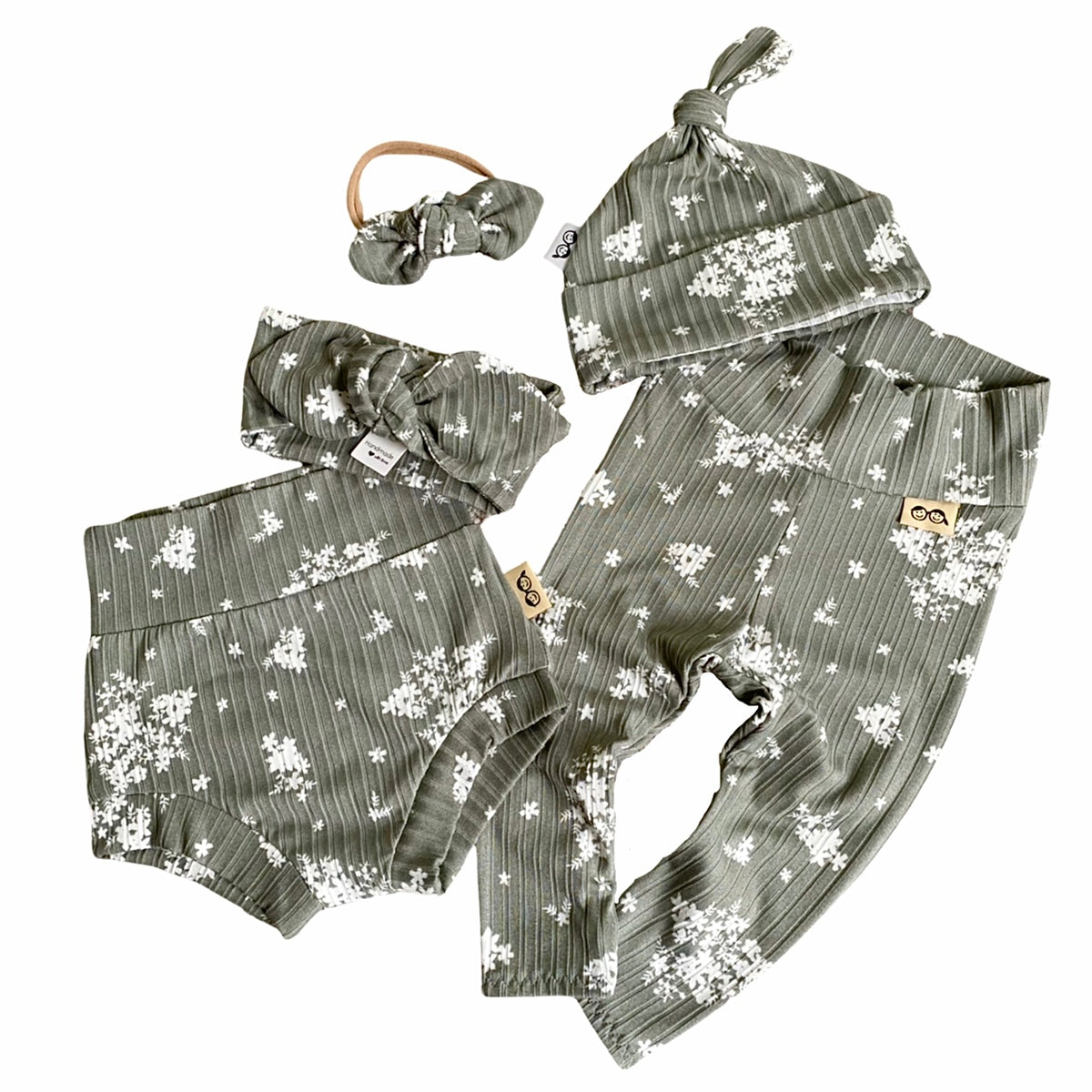 • Minimal Floral Olive Ribbed Leggings and/or Beanie Knot Hat