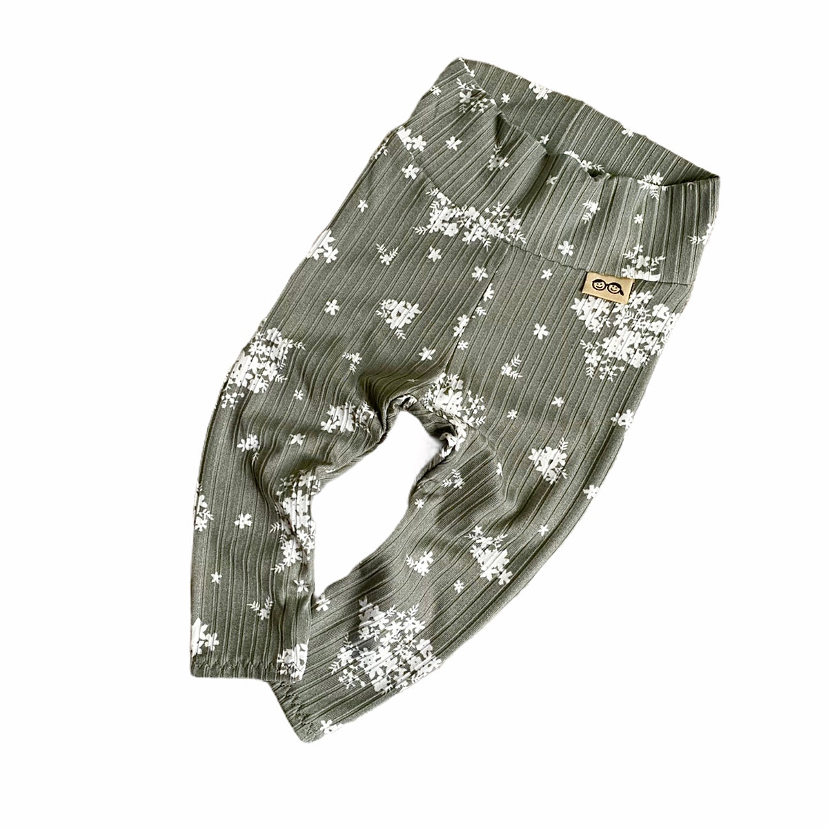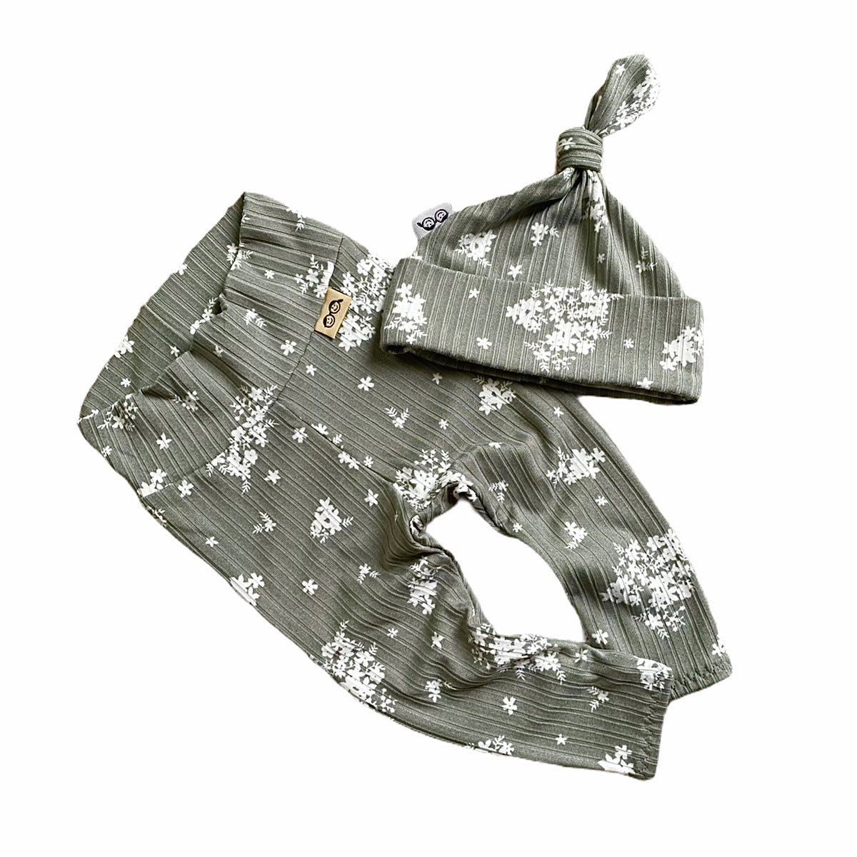 Minimal Floral Olive Ribbed Leggings and/or Beanie Knot Hat