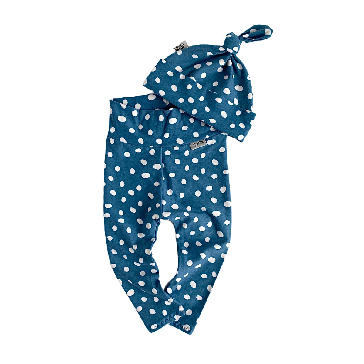 Blue White Abstract Dots Leggings and/or Beanie Knot Hat