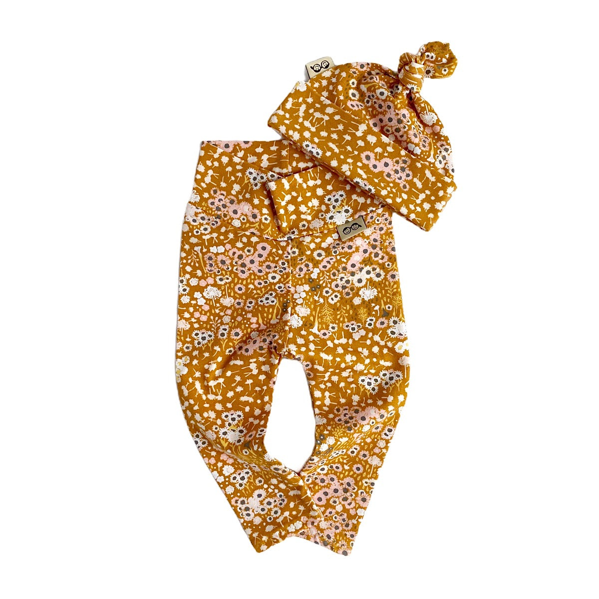 Mustard Floral Leggings and/or Beanie Knot Hat