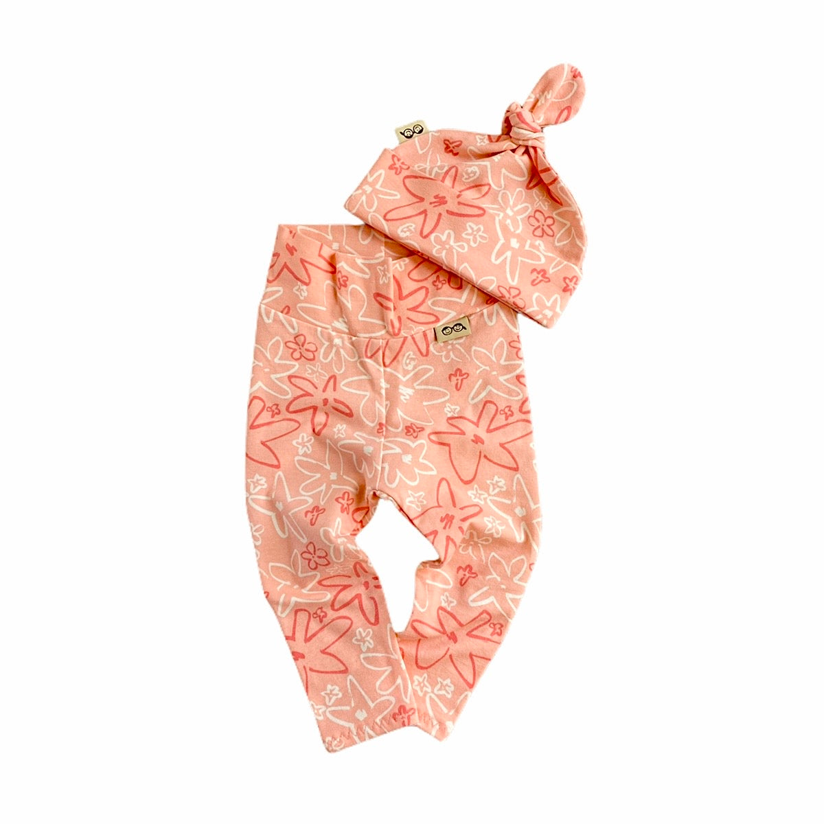 Coral Hand Drawn Flowers l Leggings and/or Beanie Knot Hat