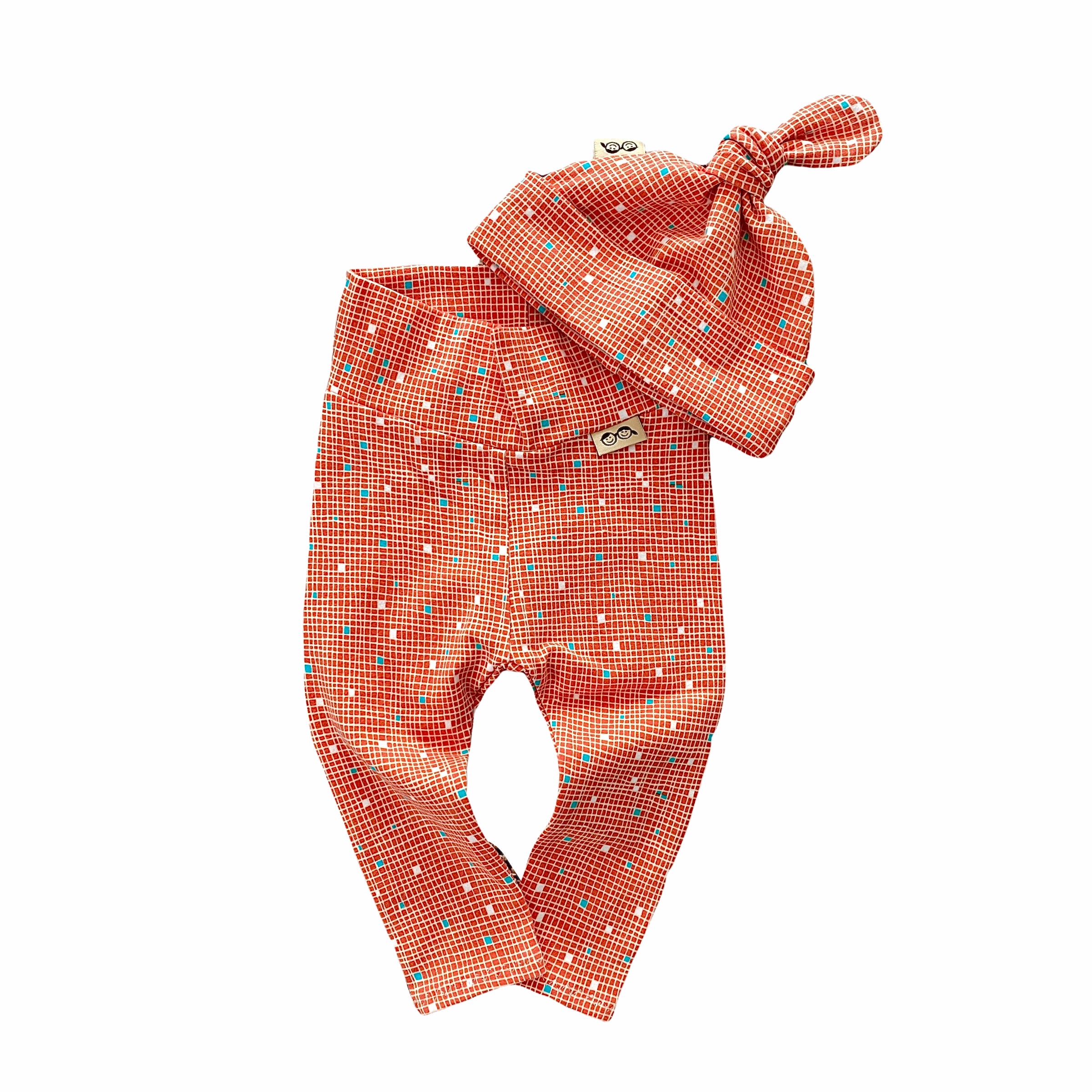 Tiny Squares on Coral Leggings and/or Knot Beanie