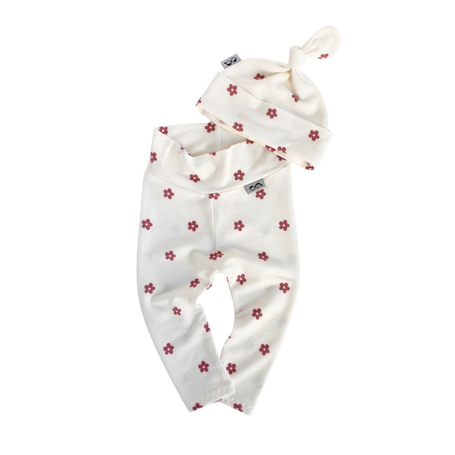 Mauve Ivory Dainty Flower Leggings and/or Beanie Knot Hat