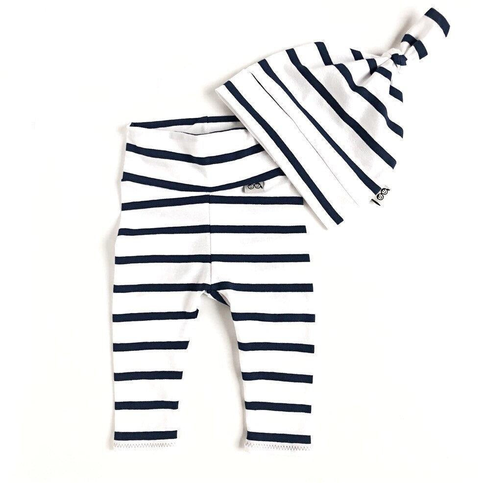 Navy White Striped Leggings and/or Knot Hat