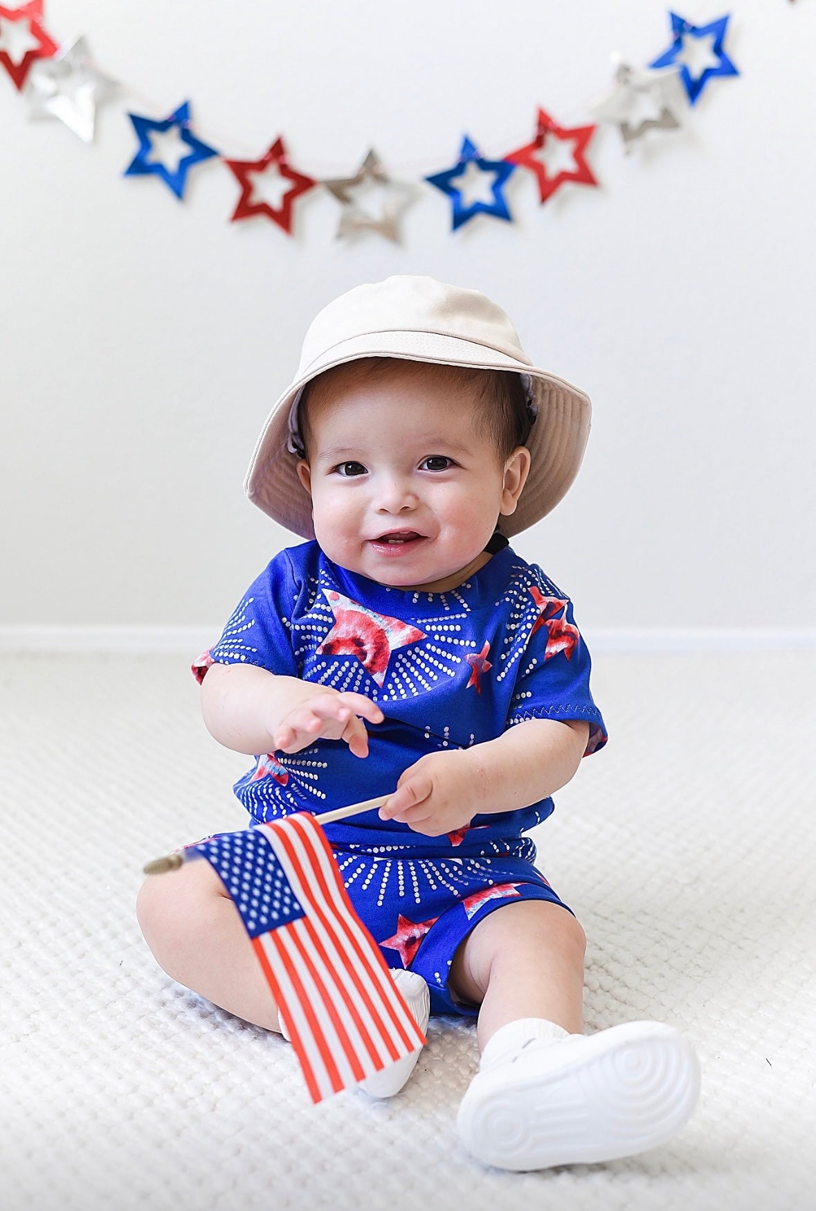 Patriotic Tie Dye Star on Blue Summer Lounge Set