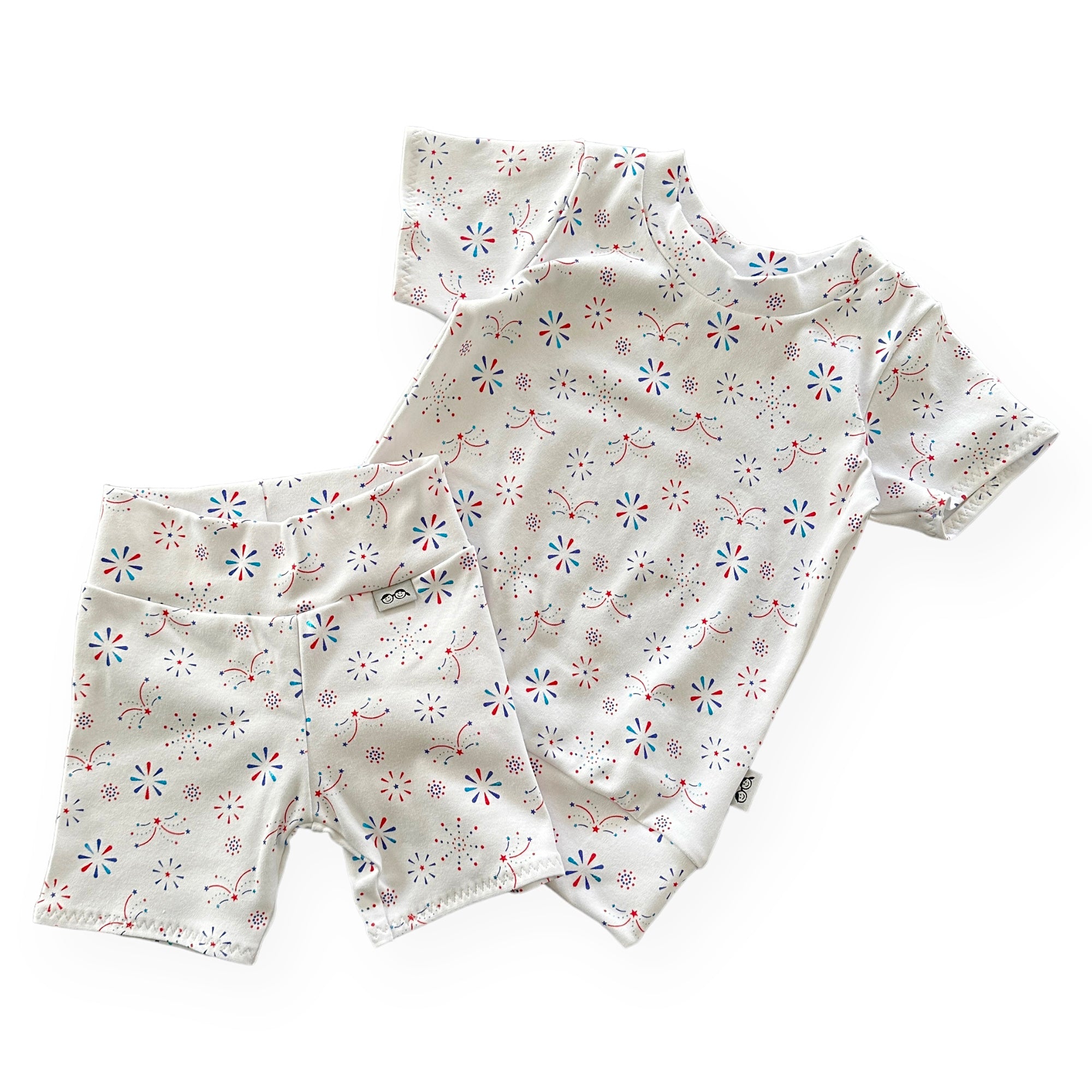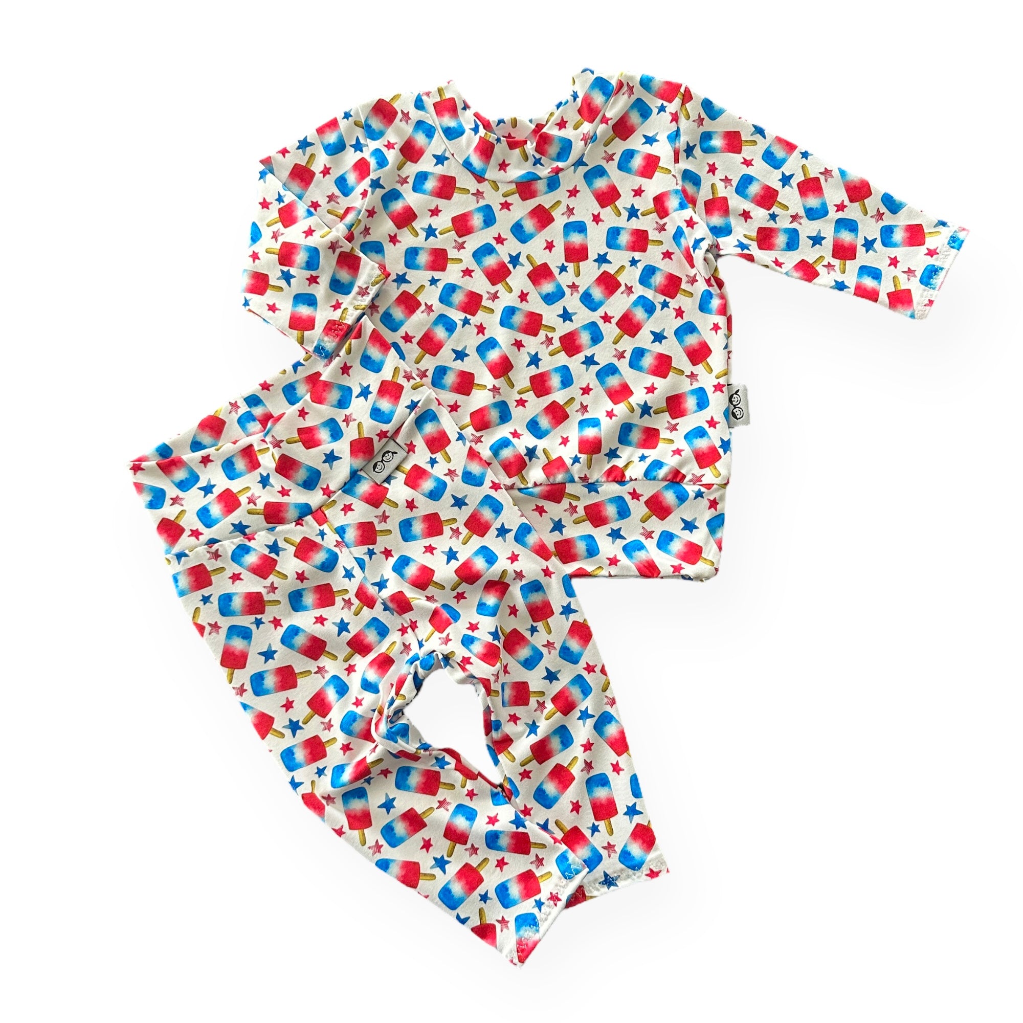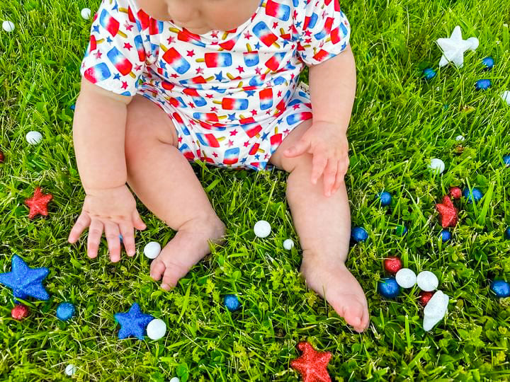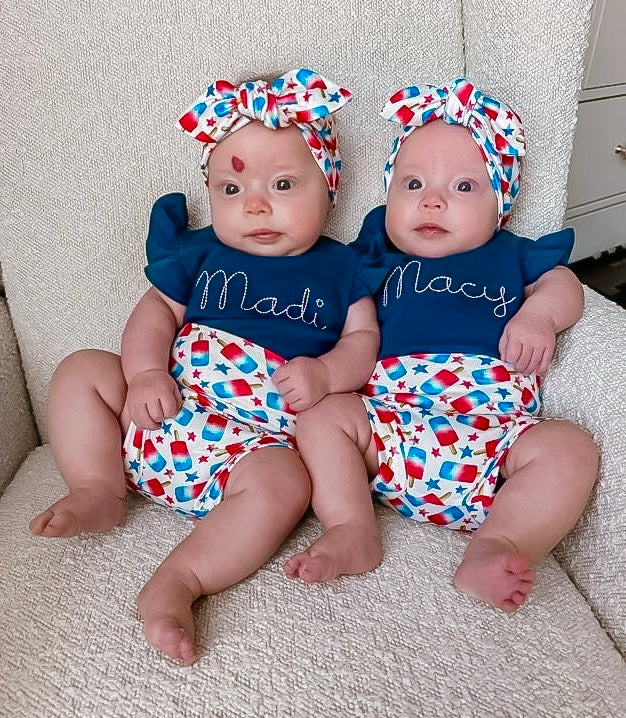Red Blue Stars Flutter Sleeve White Bodysuit