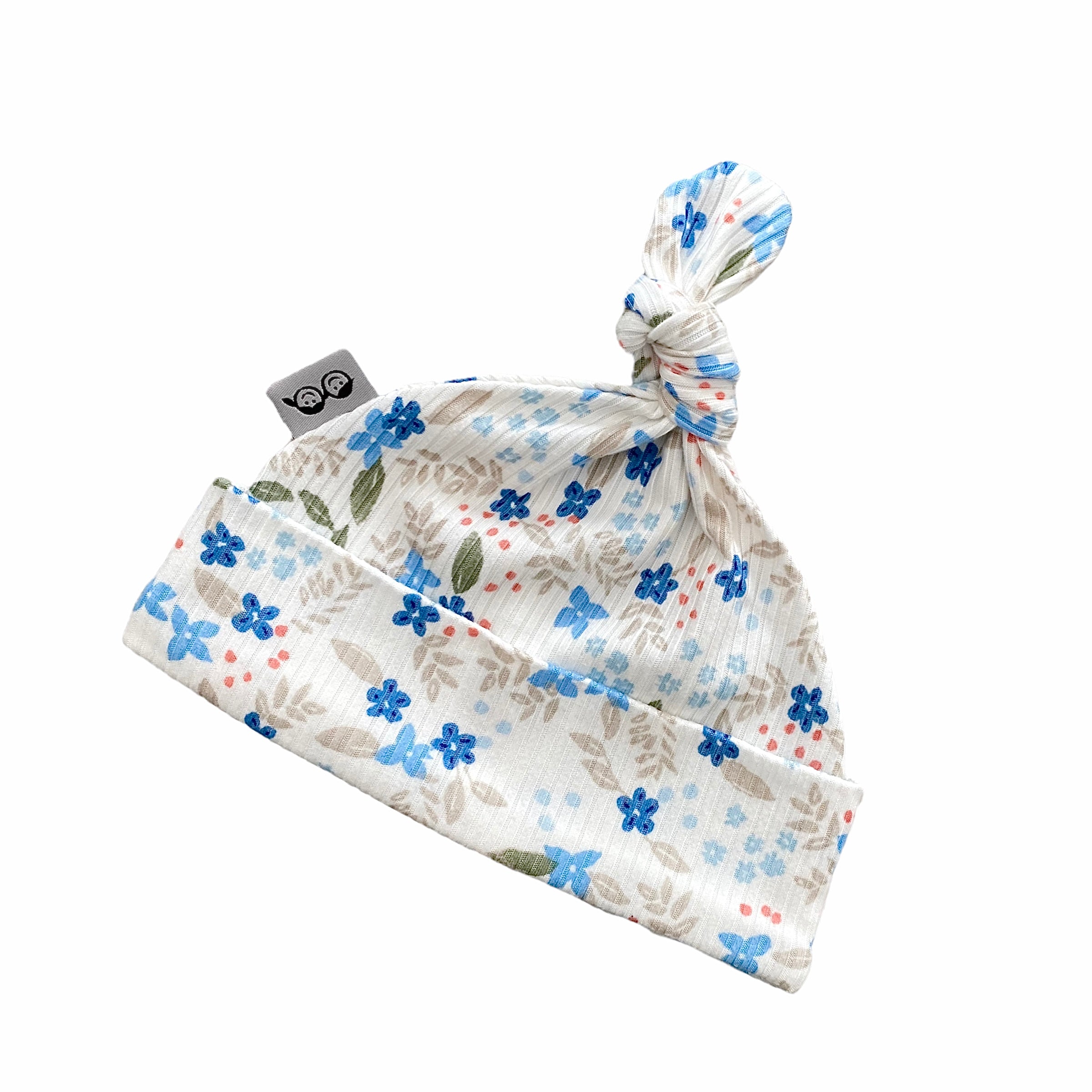 • Blue Tone Dainty Flowers on White Ribbed Leggings and/or Knot Beanie