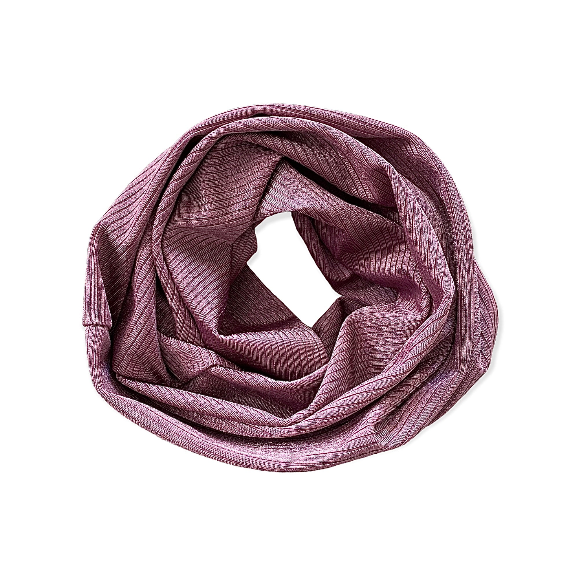• Dusty Orchid Shiny Ribbed Slouchy Beanie and Infinity Scarf