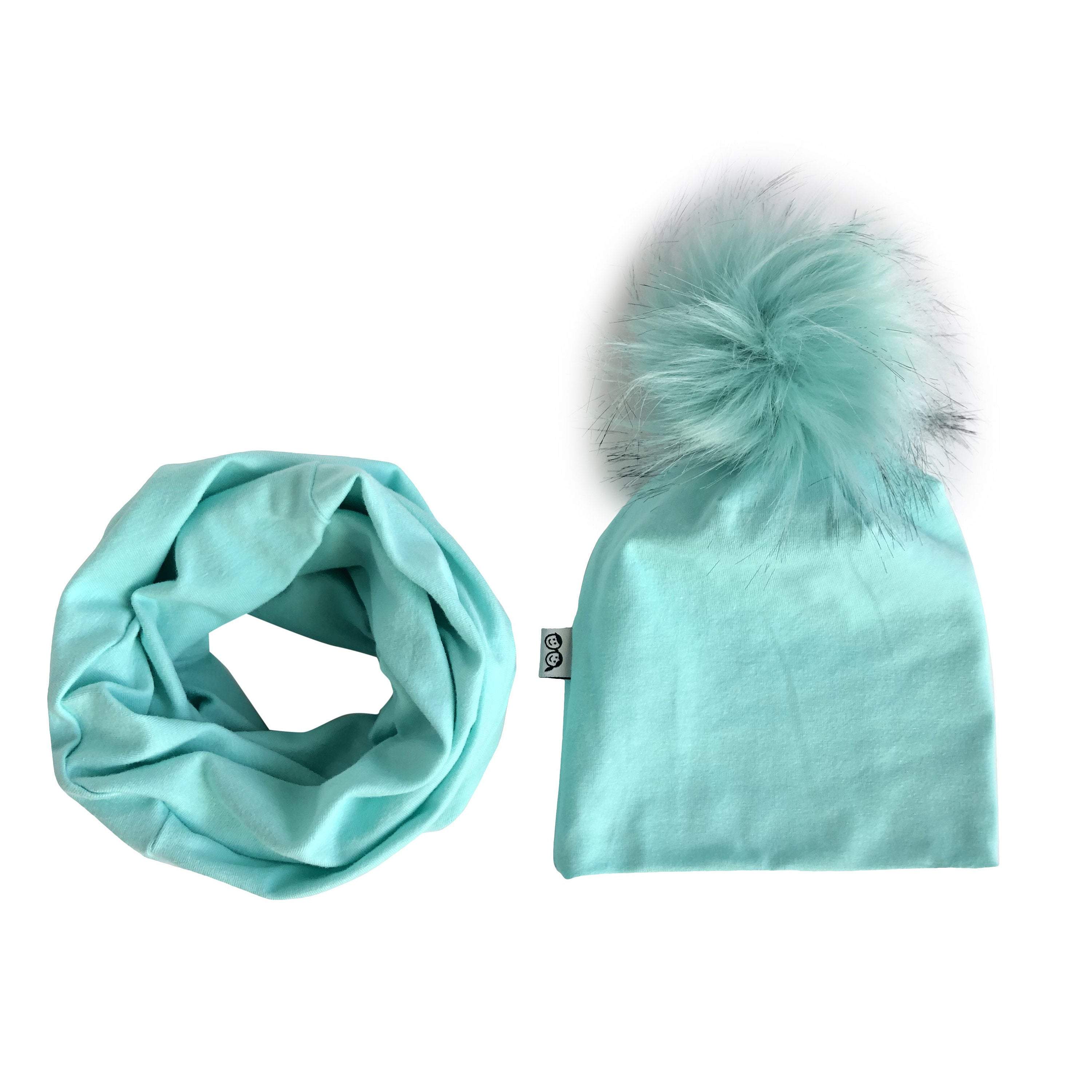 This listing is only for (one) pom-pom beanie hat and matching infinity scarf. Not included: any tops, bottoms, or accessories pictured on this listing.