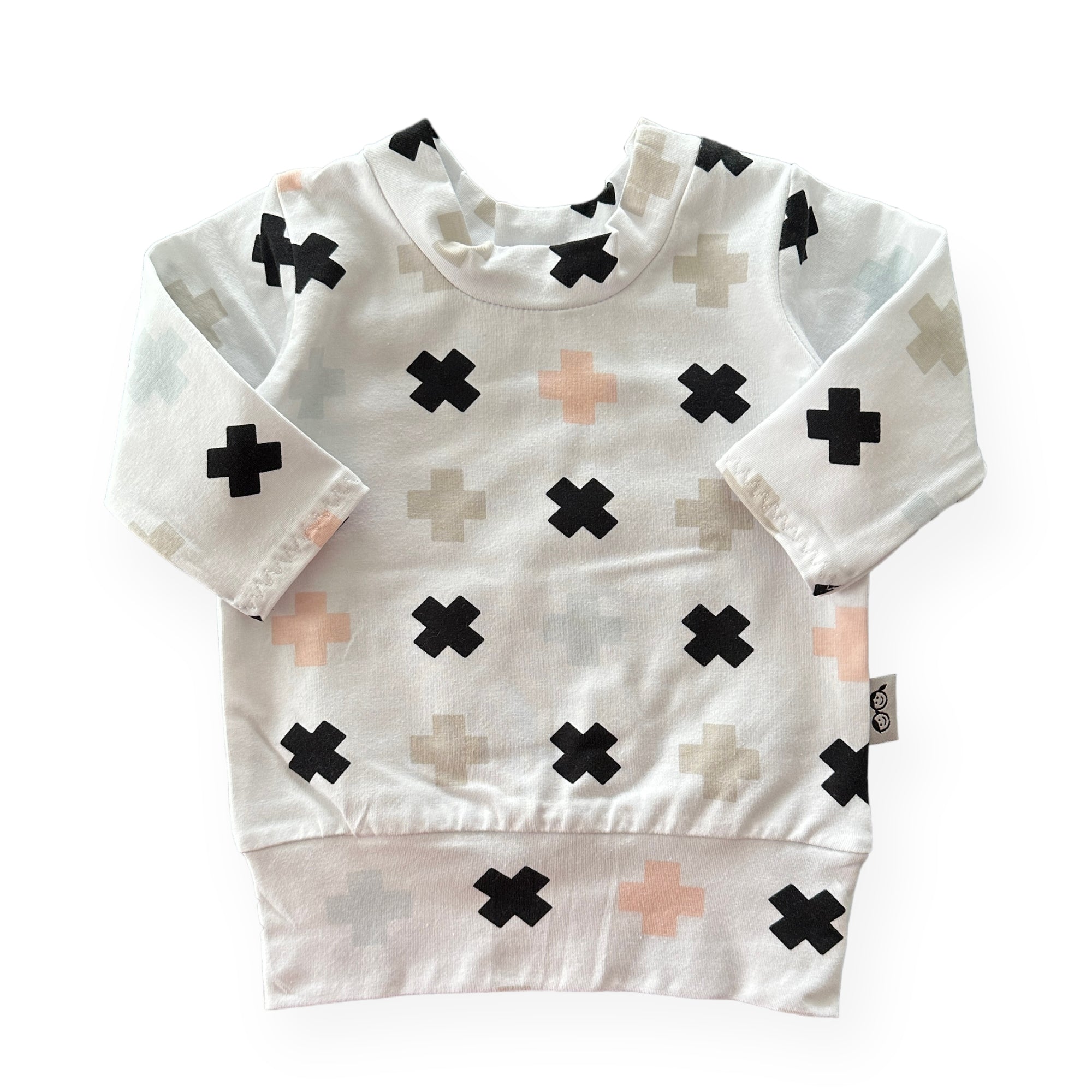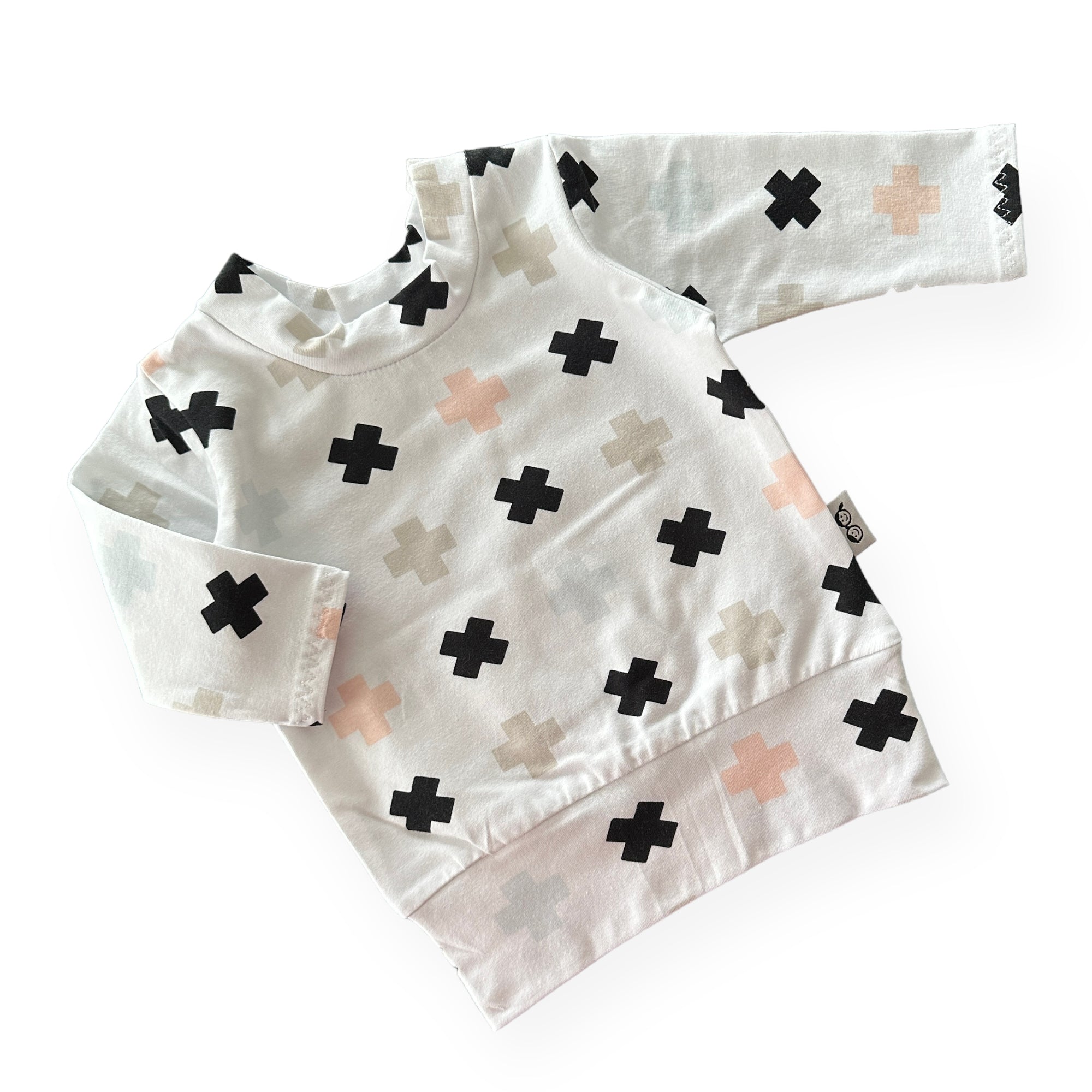 ⚬ Pullovers have a stretchy neck band and a loose fit.