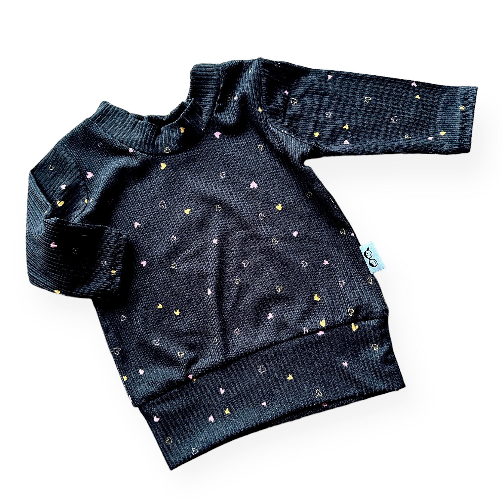 Dainty Hearts on Black Ribbed Lounge Set