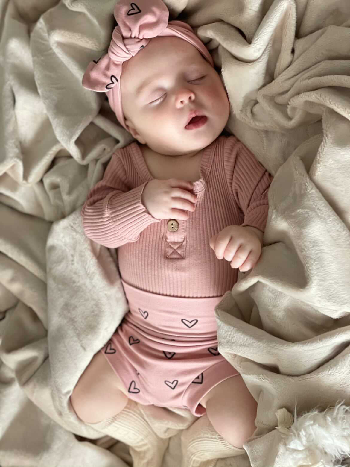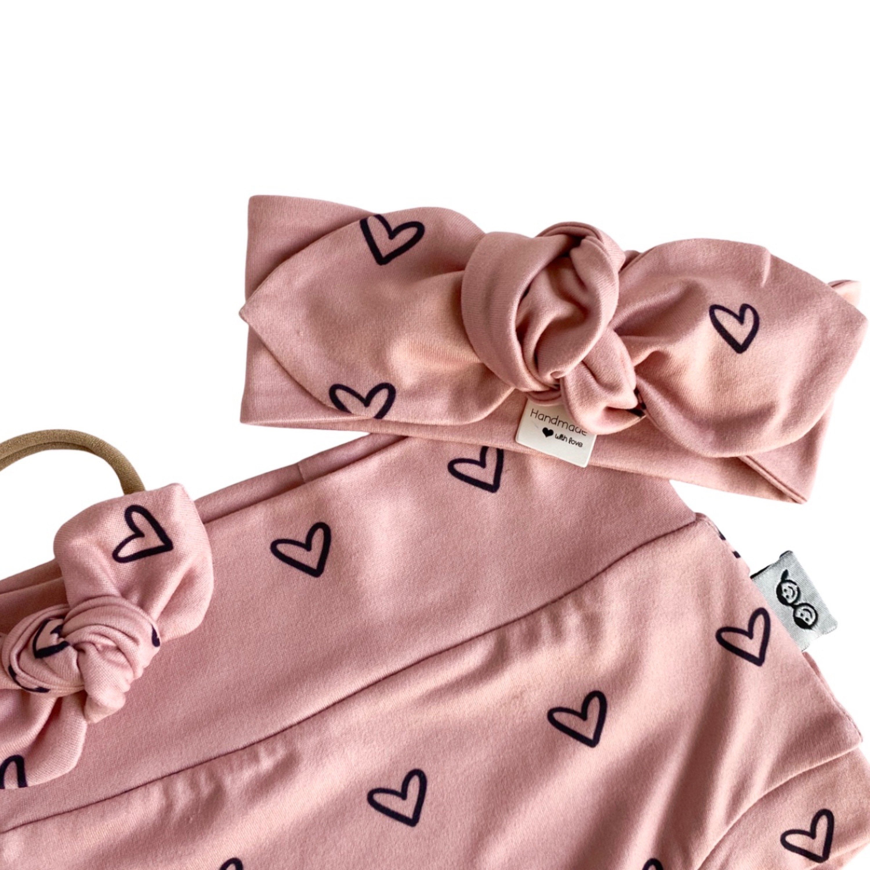 Black Hearts on Dusty Pink Bummies and/or Headbands
