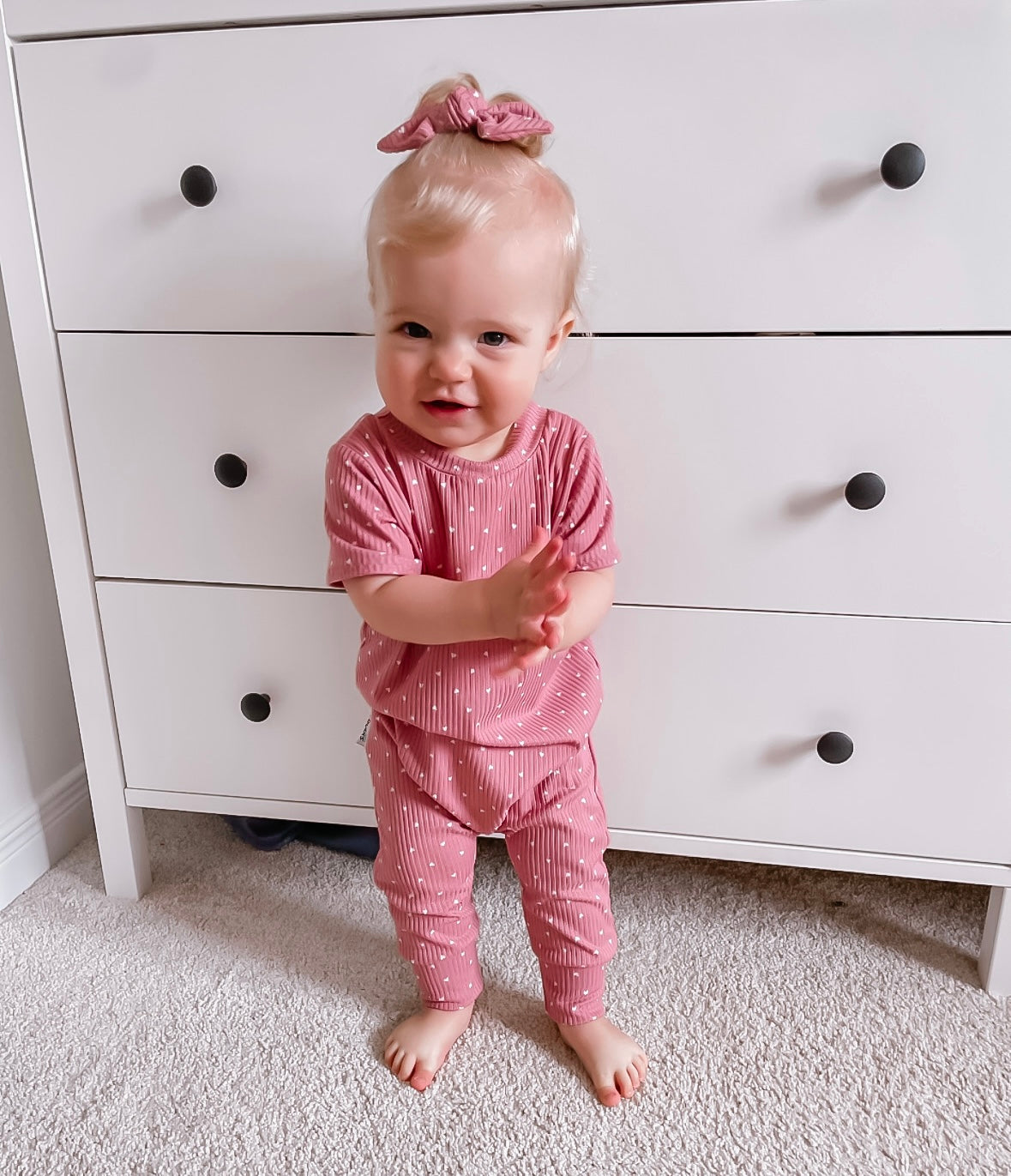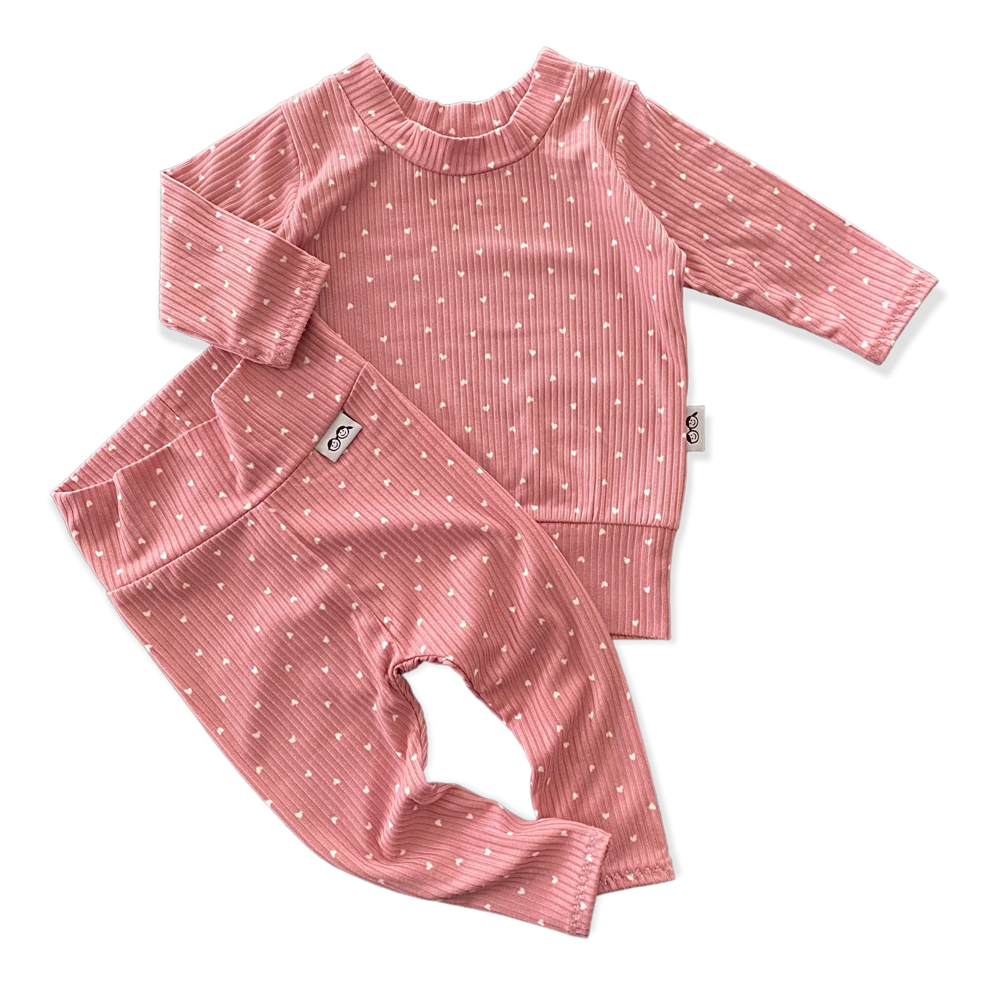 White Hearts on Dusty Rose Ribbed Lounge Set