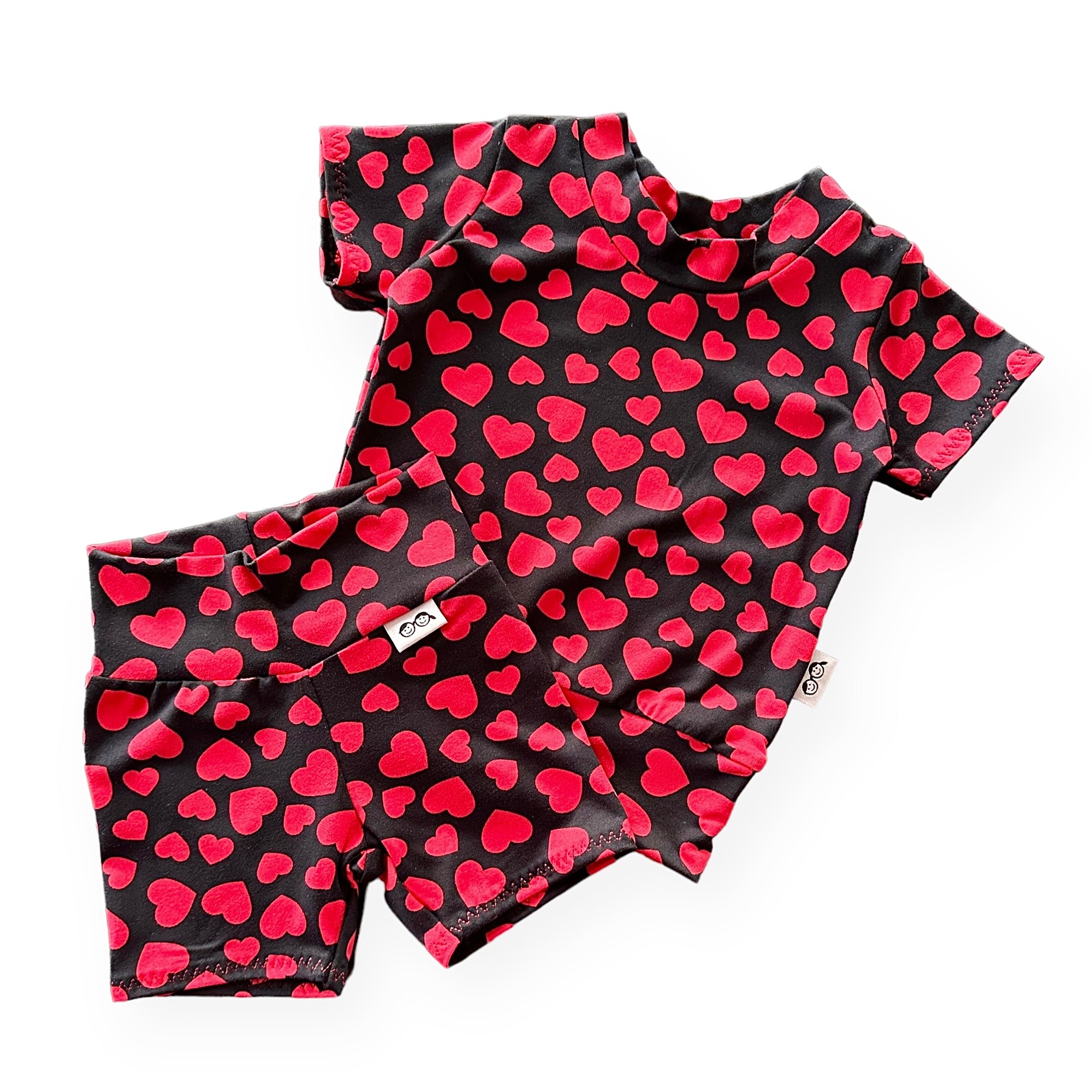 Red Hearts on Black Biker Shorts Lounge Set