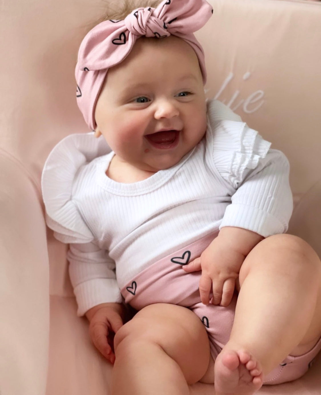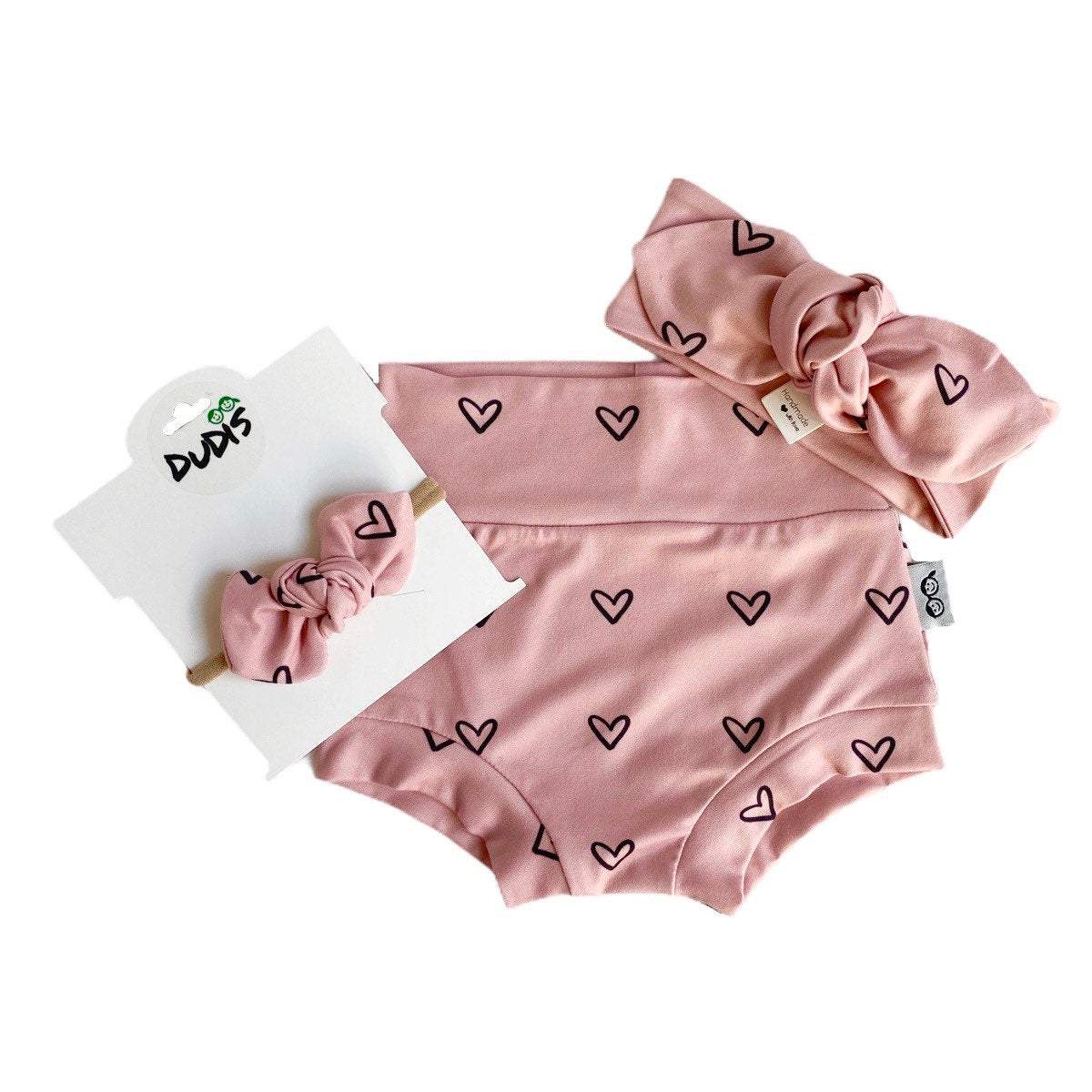 Black Hearts on Dusty Pink Bummies and/or Headbands