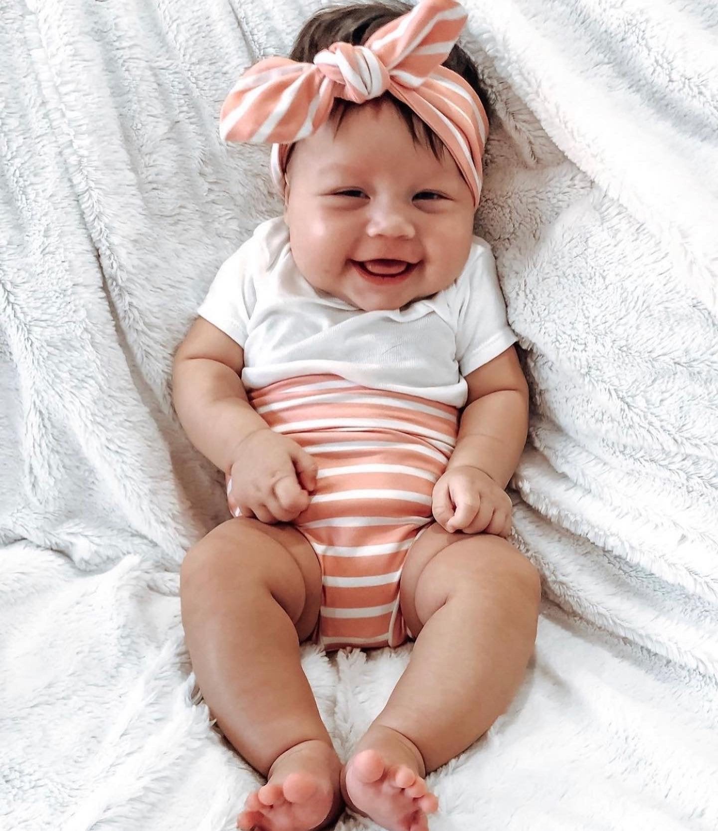 Blush Pink Striped Bummies and/or Headbands