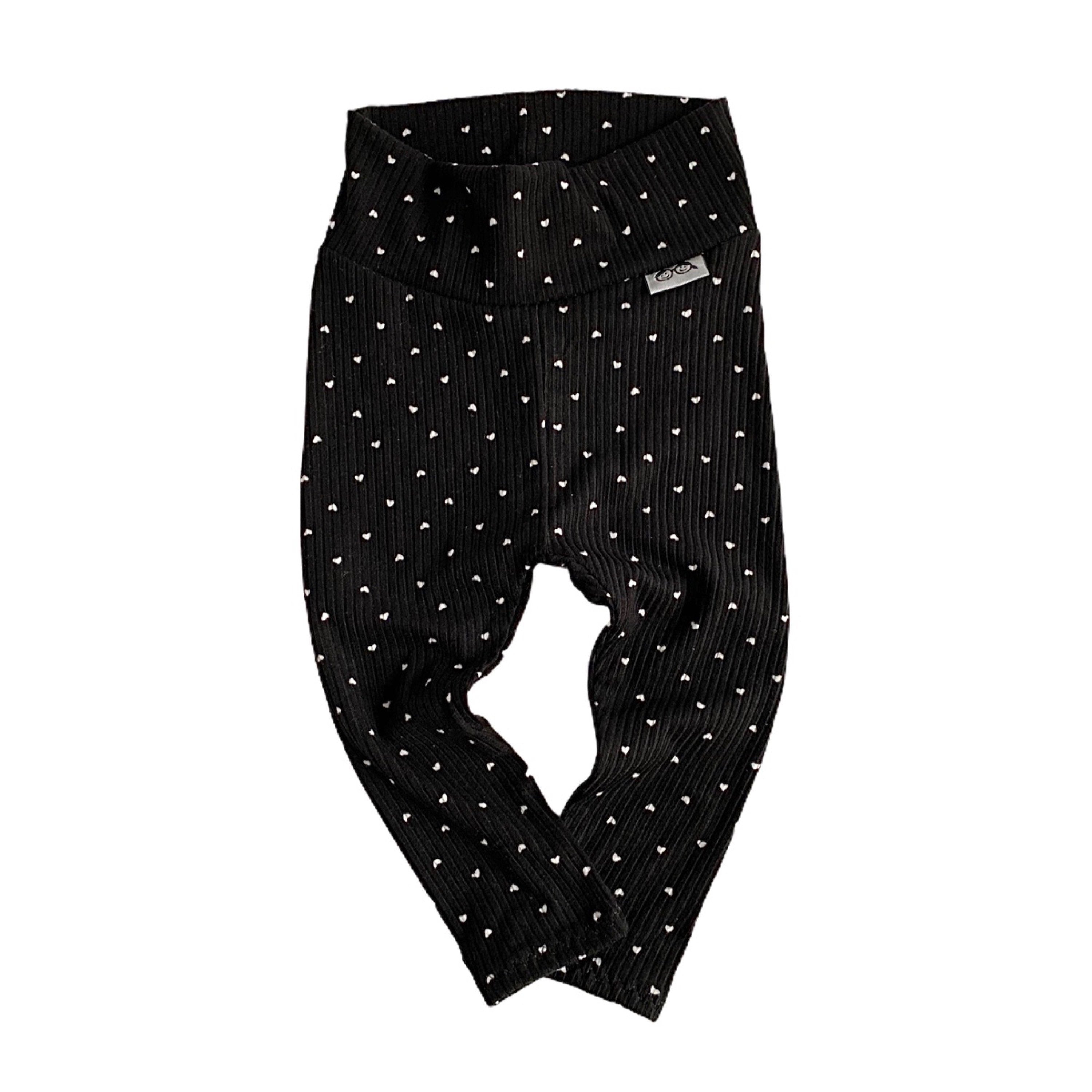 White Hearts on Black Ribbed Leggings