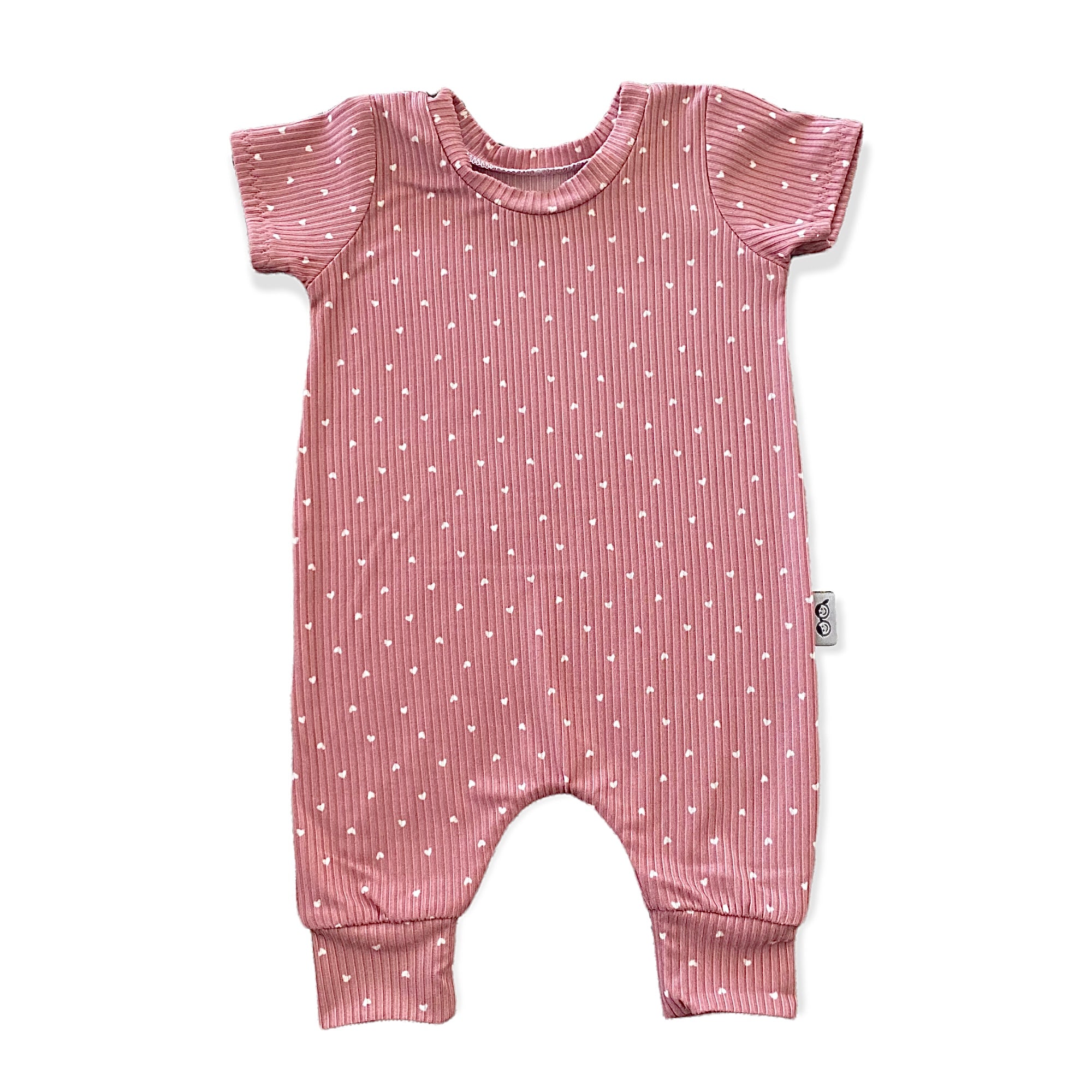 White Hearts on Dusty Rose Ribbed Harem Romper