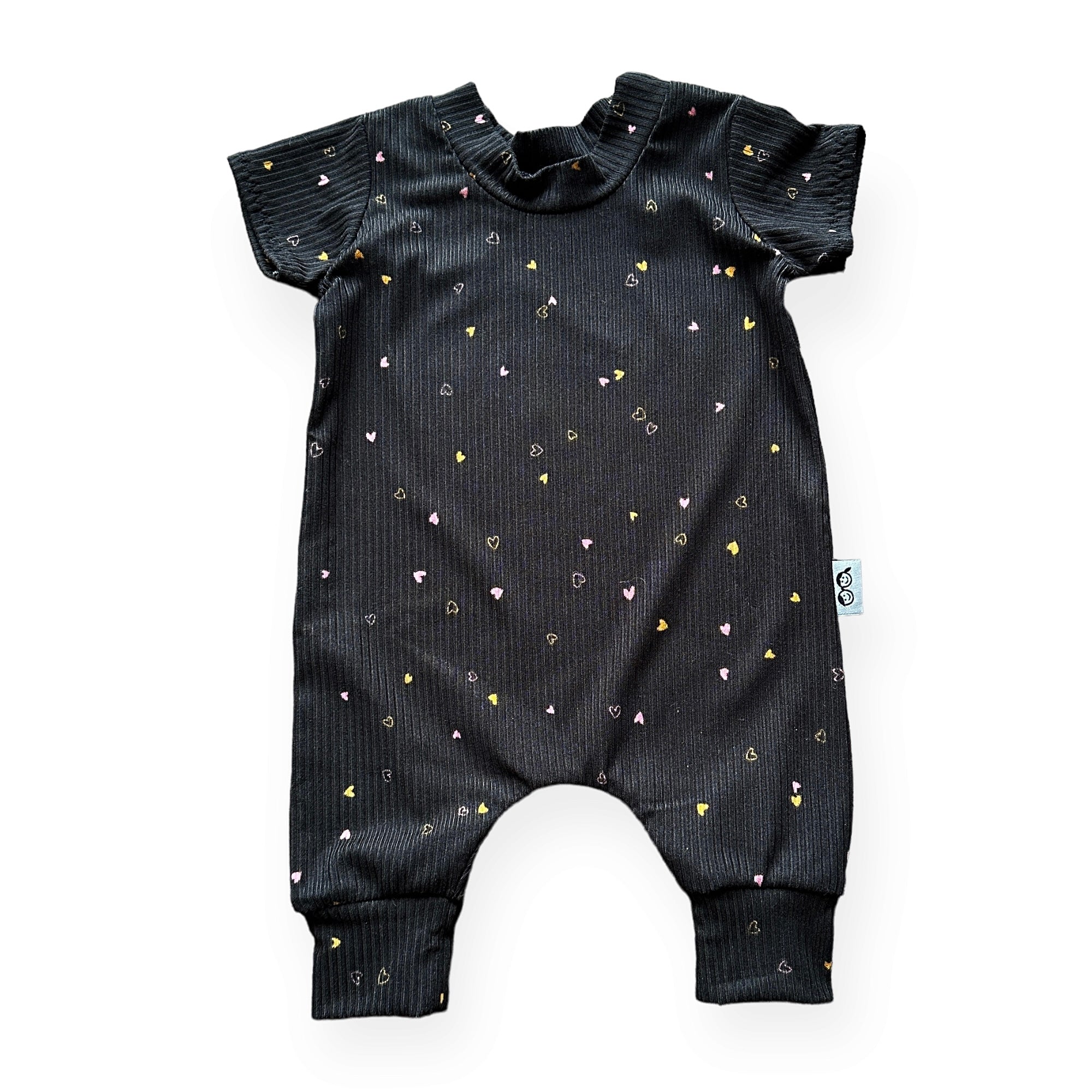 Dainty Hearts on Black Ribbed Harem Romper
