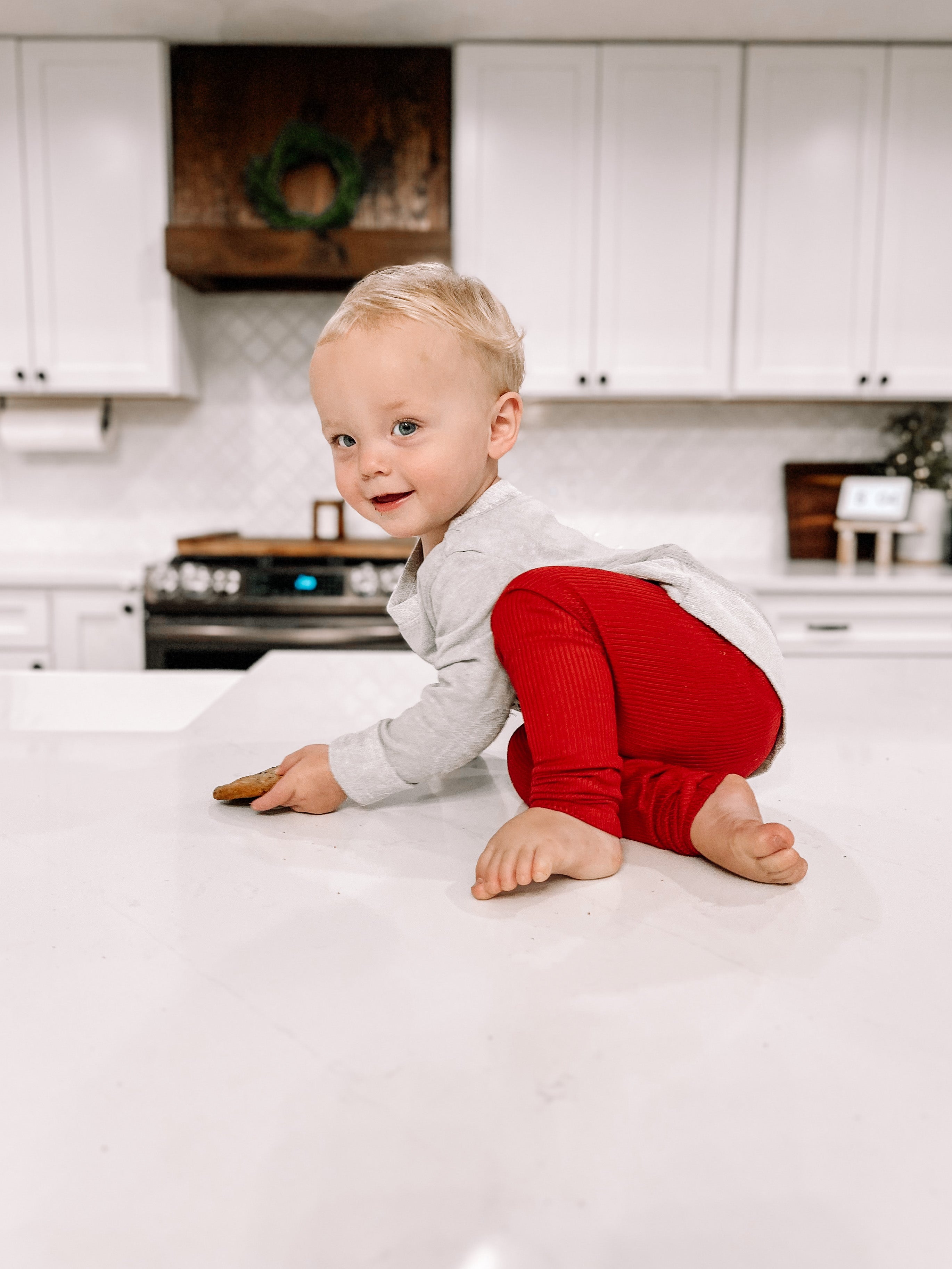 Red Ribbed Leggings