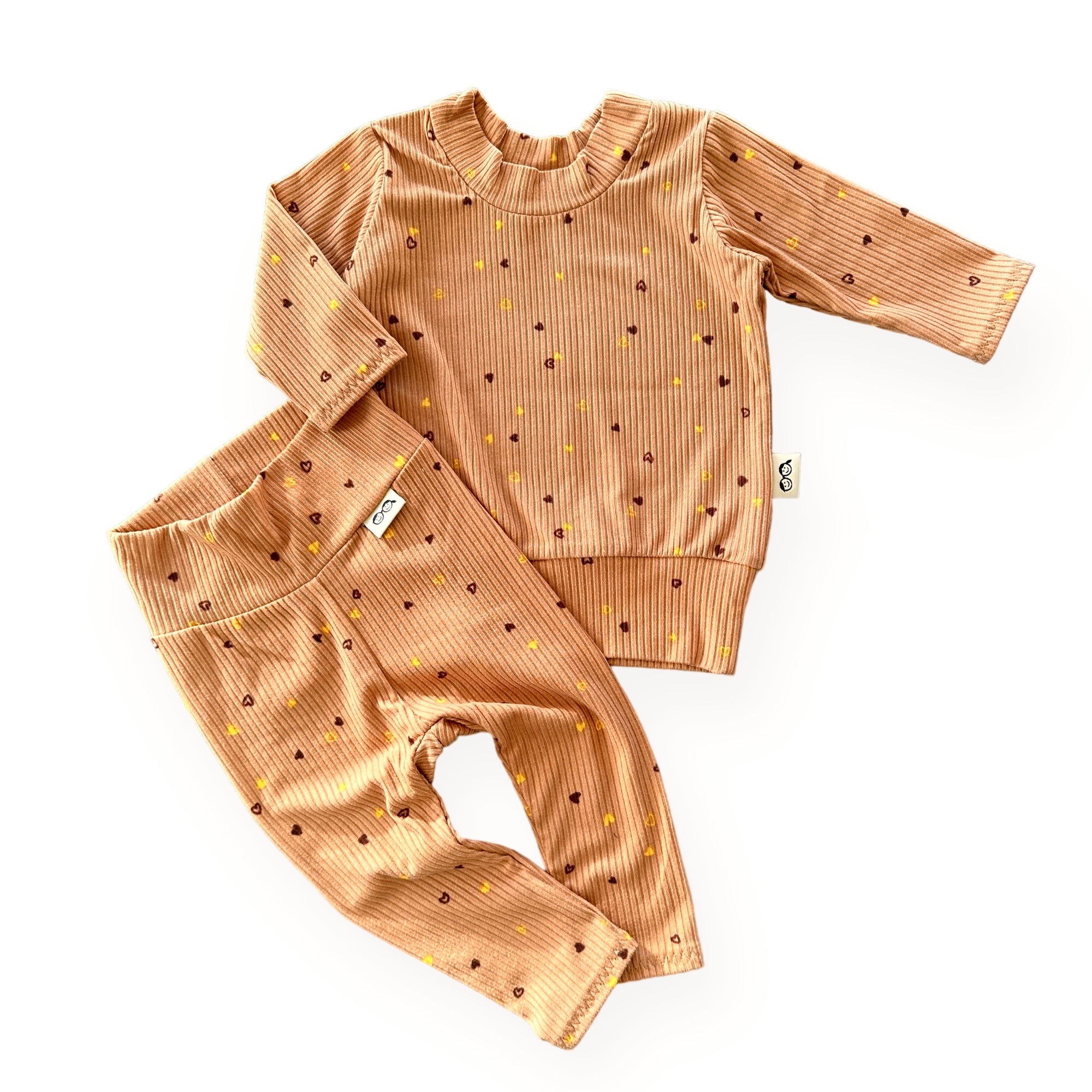 Dainty Hearts on Camel Ribbed Lounge Set
