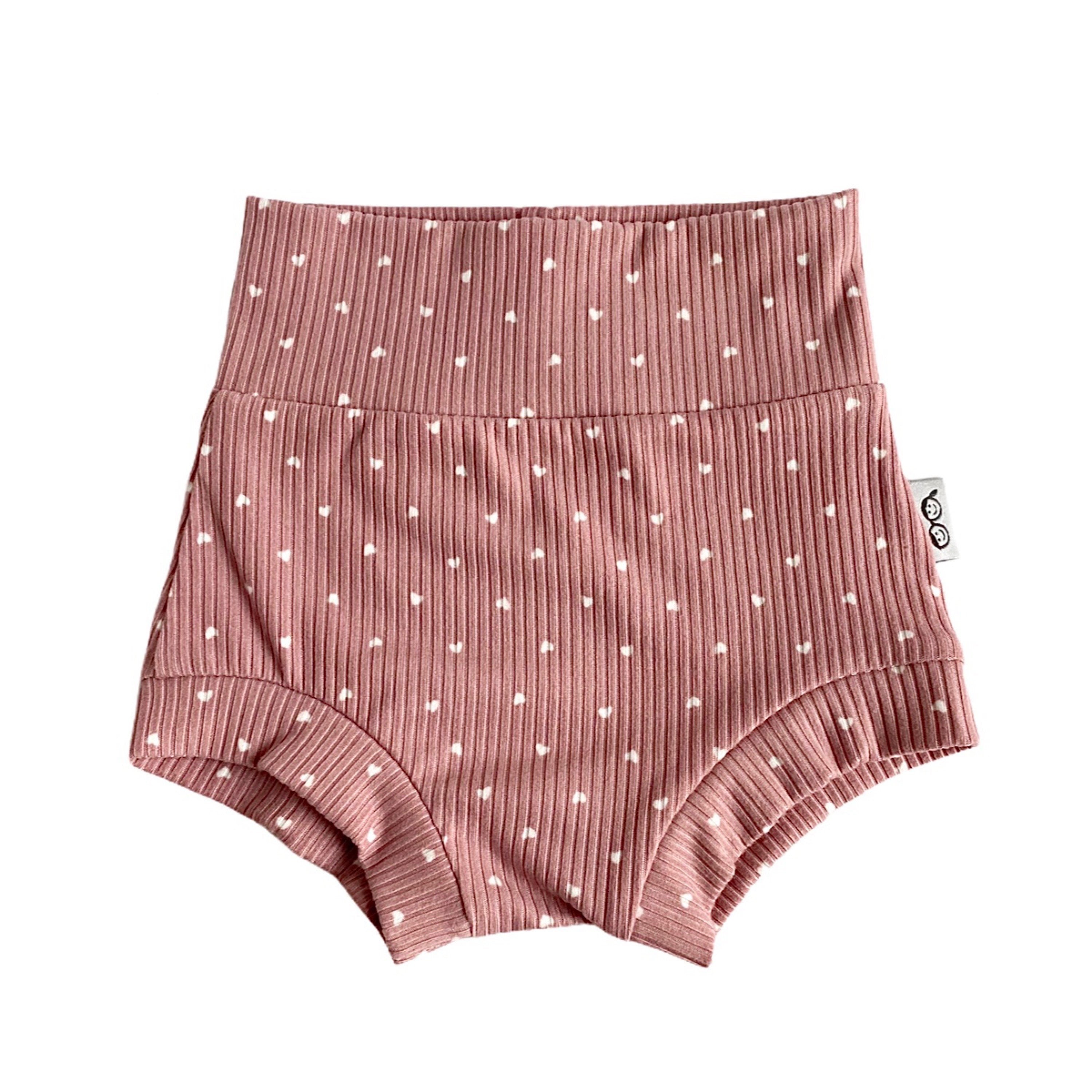 White Hearts on Dusty Rose Ribbed Bummies